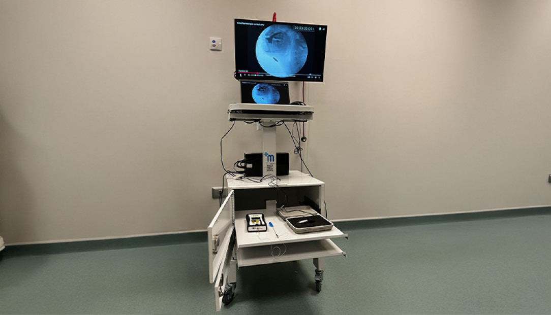 Dispositivo único en Chile de electroestimulación que, a través de electrodos superficiales que emiten pulsos eléctricos, activa los músculos implicados en la deglución, tanto a nivel sensitivo como motor.